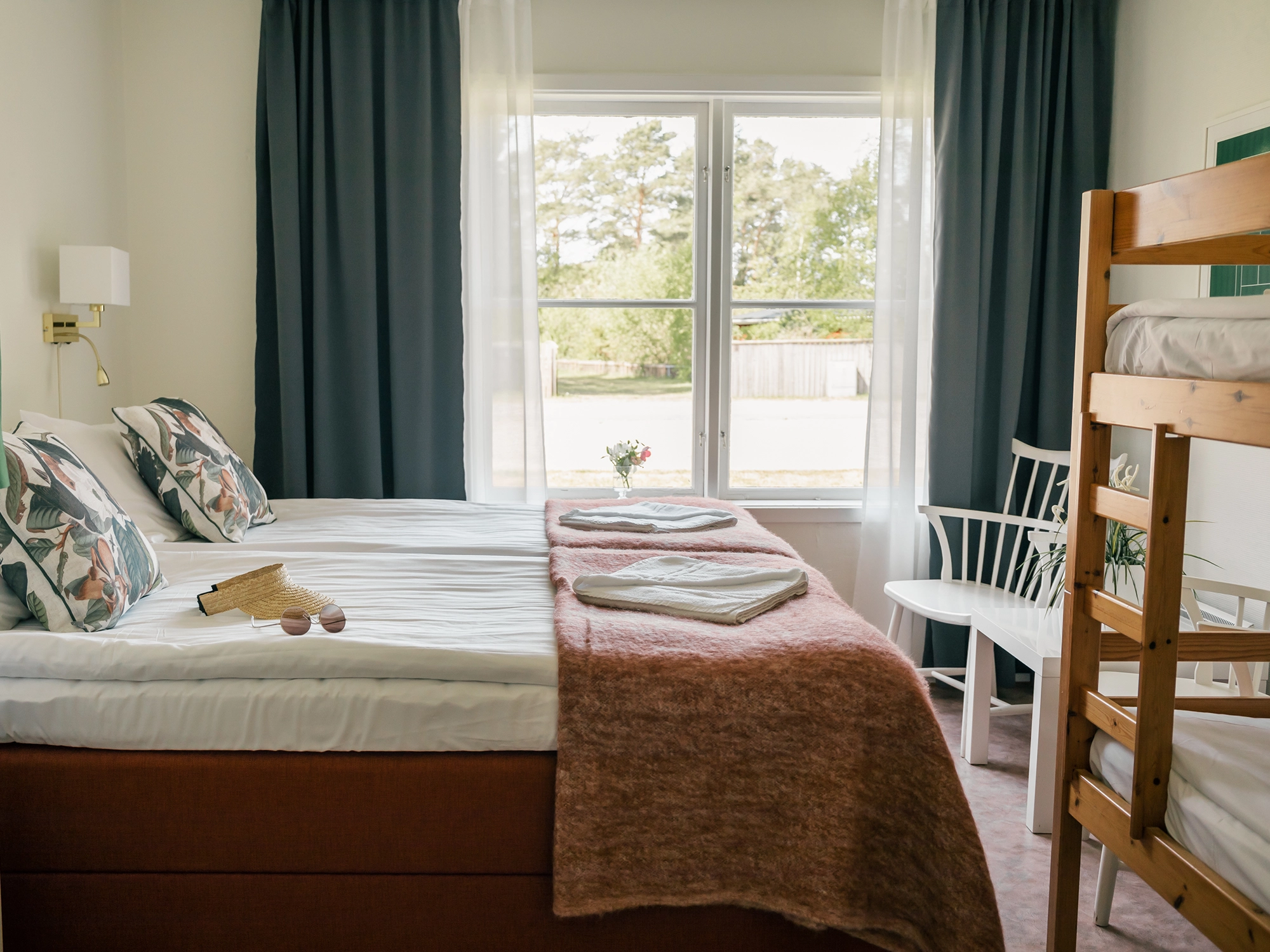 I våra familjerum har vi 4 bäddar bestående av en våningsäng och två enkelsängar. Här finns tillgång till gratis Wifi. Delad dusch/wc. Frukost ingår.
